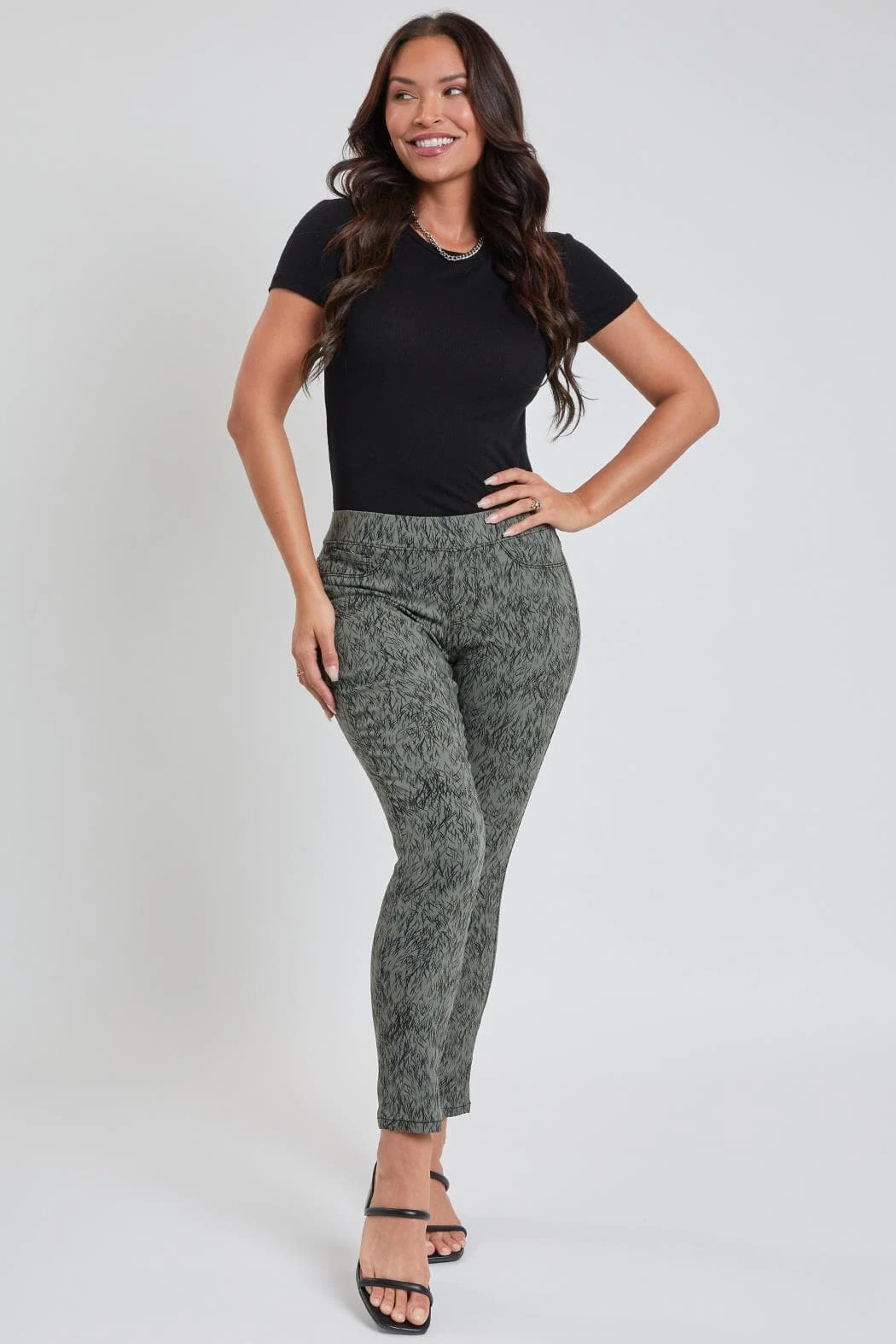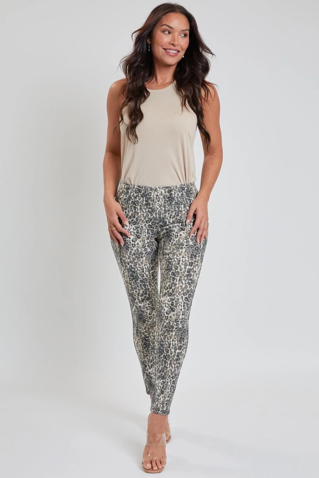 Show your wild side in our printed Women’s Petite Mid Rise Jeggings. These mid-waisted jeggings are fitted hip to hem to flatter your natural curves and have an elastic waistband for your ultimate comfort. Detailed with faux front pockets, two functional back pockets, and a thick waistband. Constructed with a stretchy material for easy movement. Style with a sporty tank and sandals for a cute-casual look you will love throughout the day!