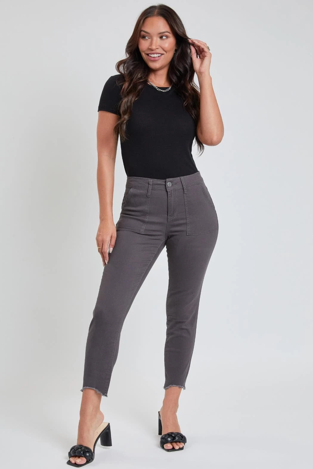 It’s all about the details in our pair of Women’s Petite Pork Chop Pocket Skinny Pants With Dog Bite Hem! Add to your #OOTD today. Featuring skinny fit with four-pocket construction, single-summary closure with zipper, dog bite hem, and belt loops.