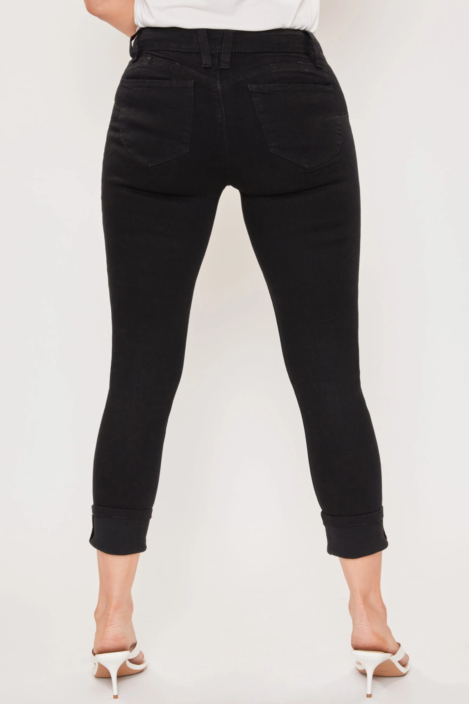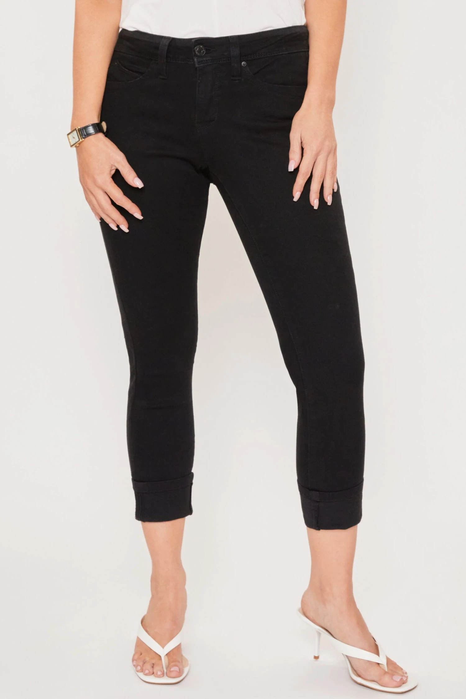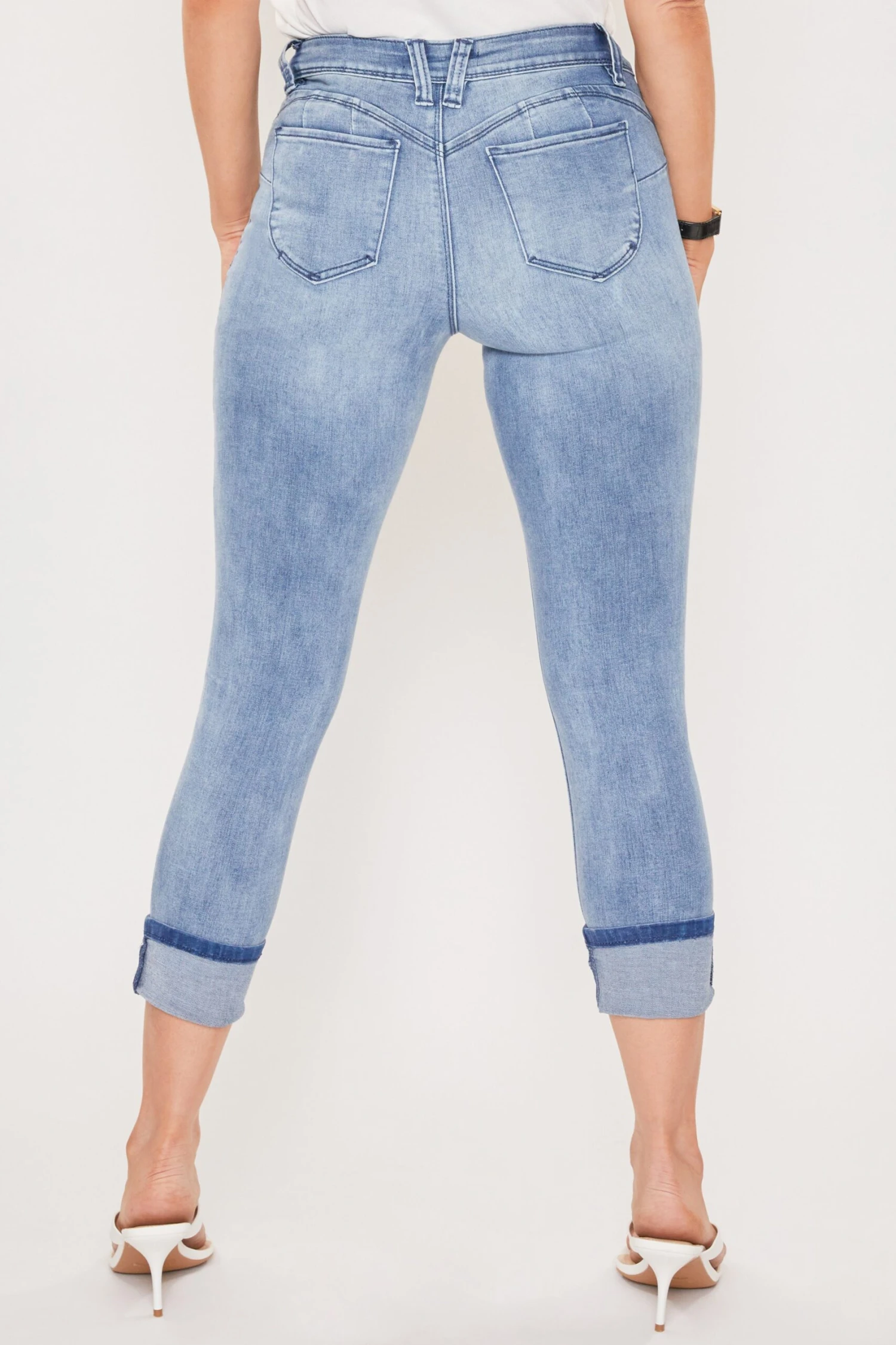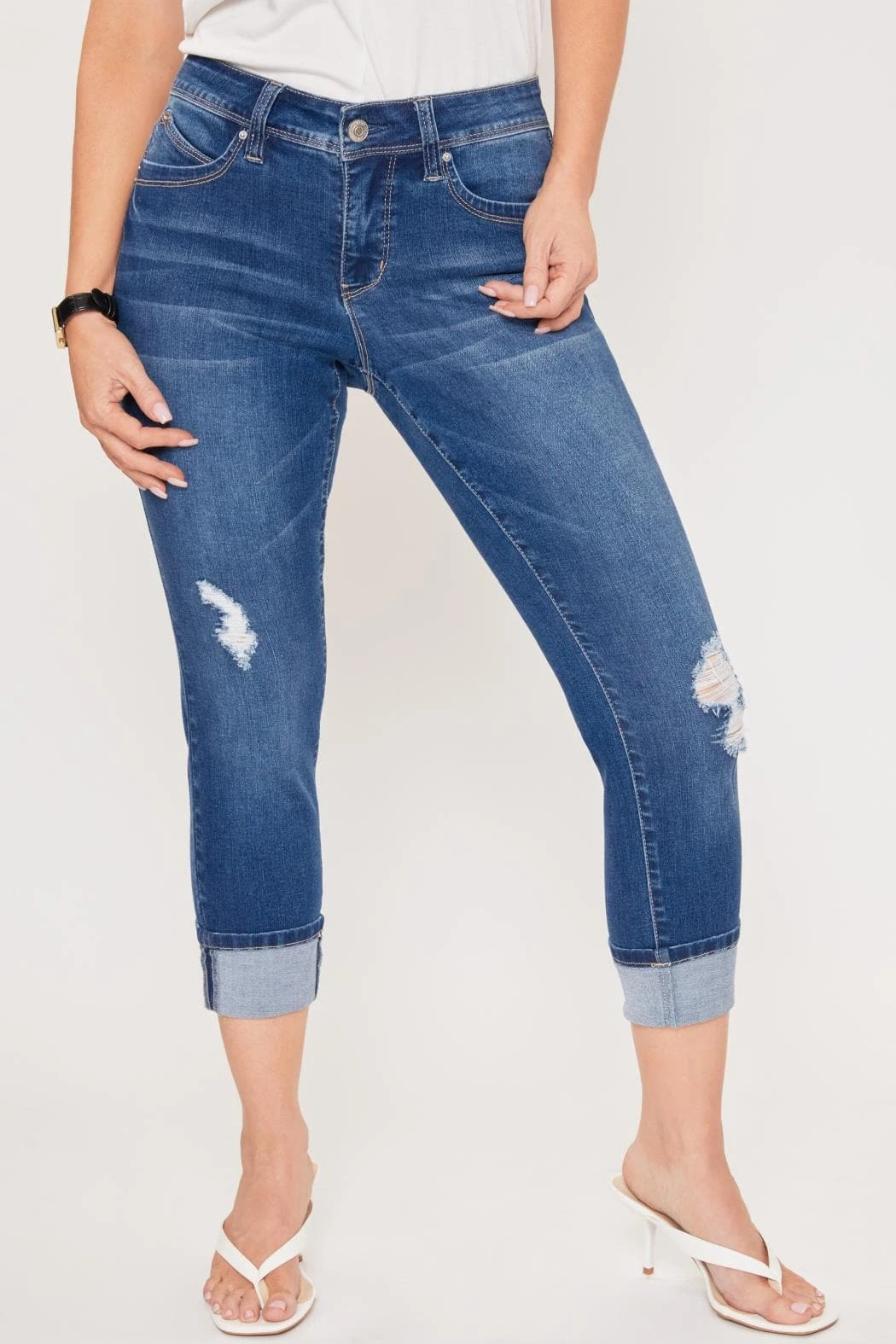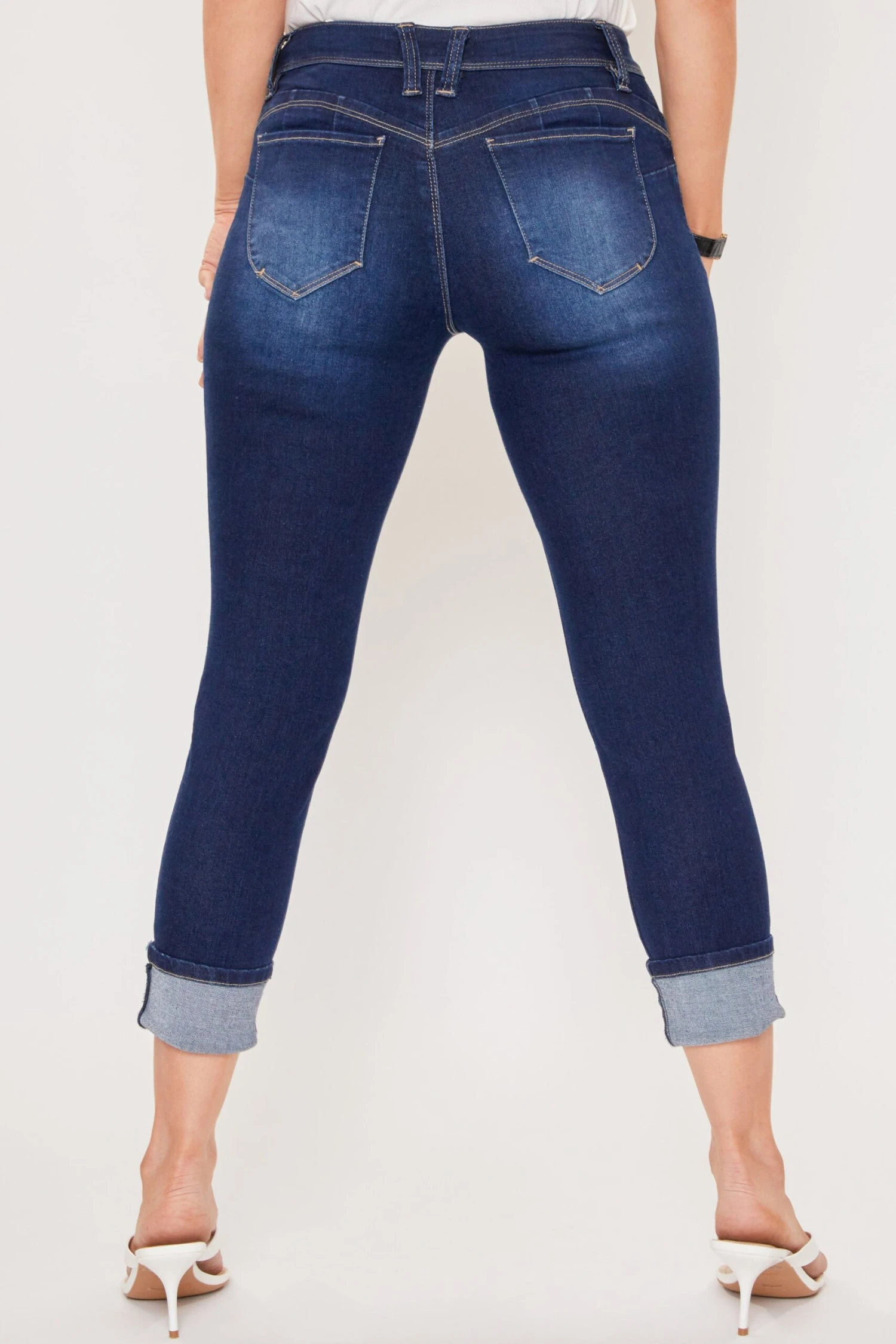 Our famous WannaBettaButt fit! No kidding! This really works. We ever so slightly “lift and shift” your bum to give you a firmer look with specially designed “contour seams” to help you achieve a flattering look. These Women’s Petite WannaBettaButt Mega Cuff Ankle Jeans Made From Recycled Fibers are designed with fading throughout for a comfortable and casual look. Featuring a classic five-pocket construction, adjustable cuffs, single-summary closure with front zip, and belt loops. Due to the nature of the novelty wash process and hand-crafted design, each garment will have a unique appearance.
