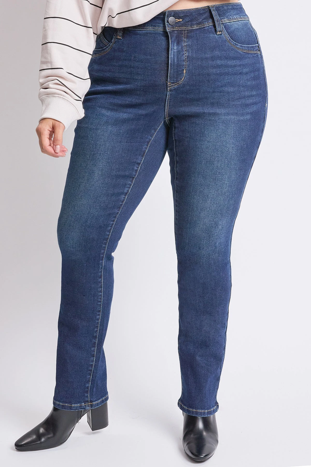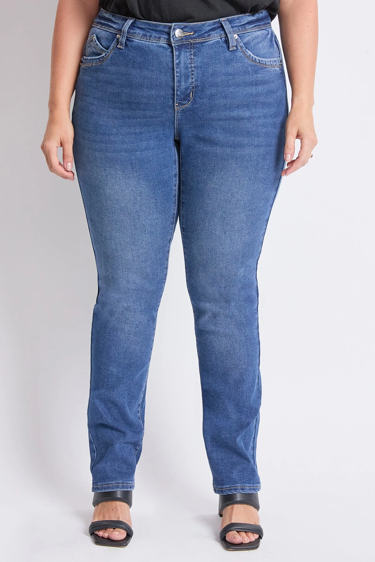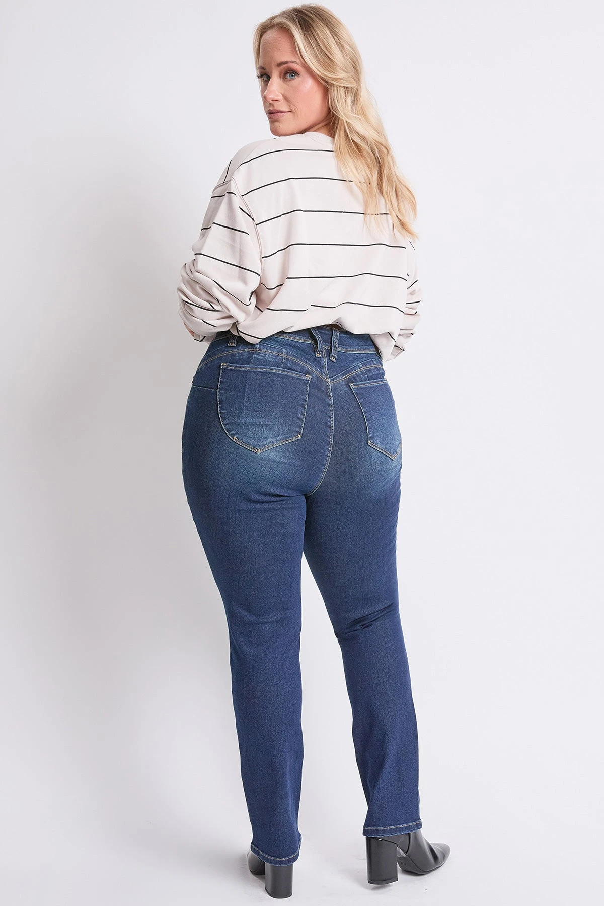 Women’s Plus High Rise Curve Confidence WannaBettaButt Straight Leg Jeans from Royalty For Me, designed to give you the ultimate blend of style, comfort, and confidence. These jeans feature a high-rise waist and straight leg cut, providing a classic silhouette that flatters every curve.