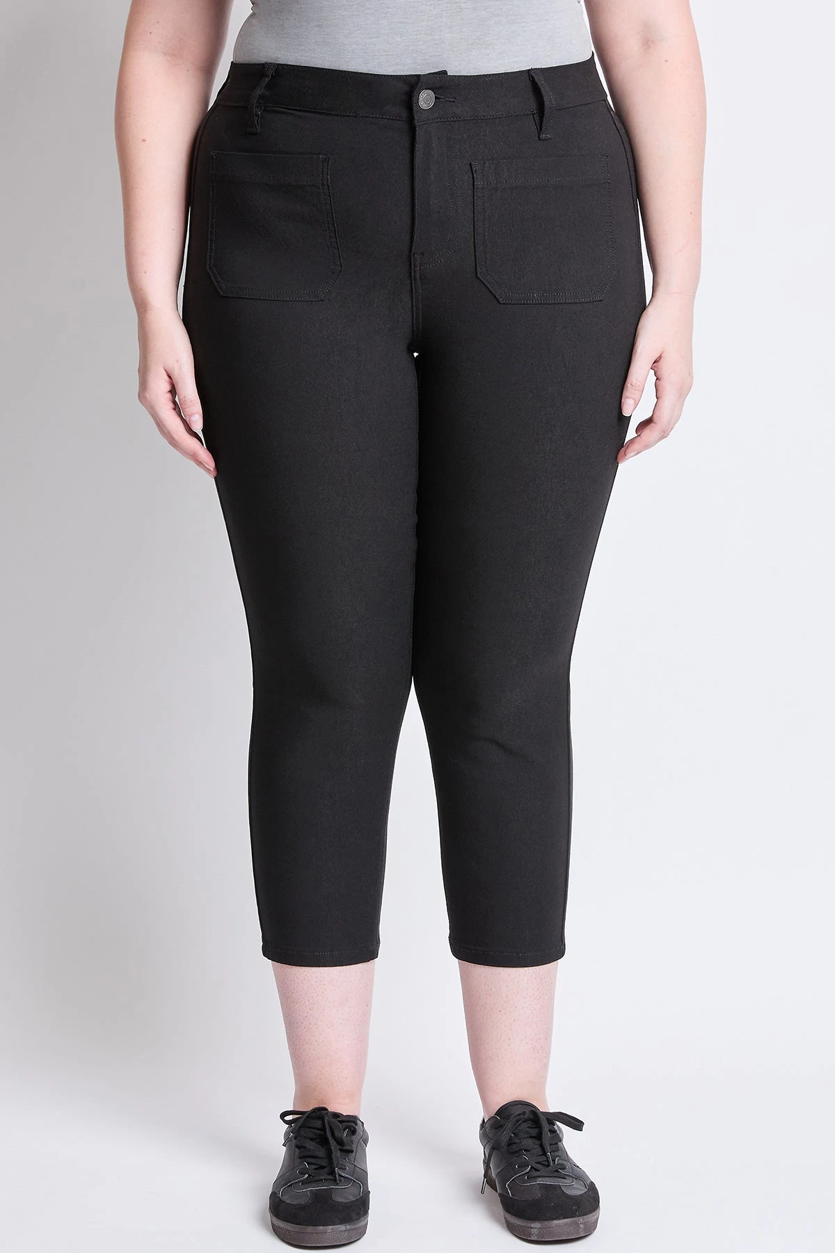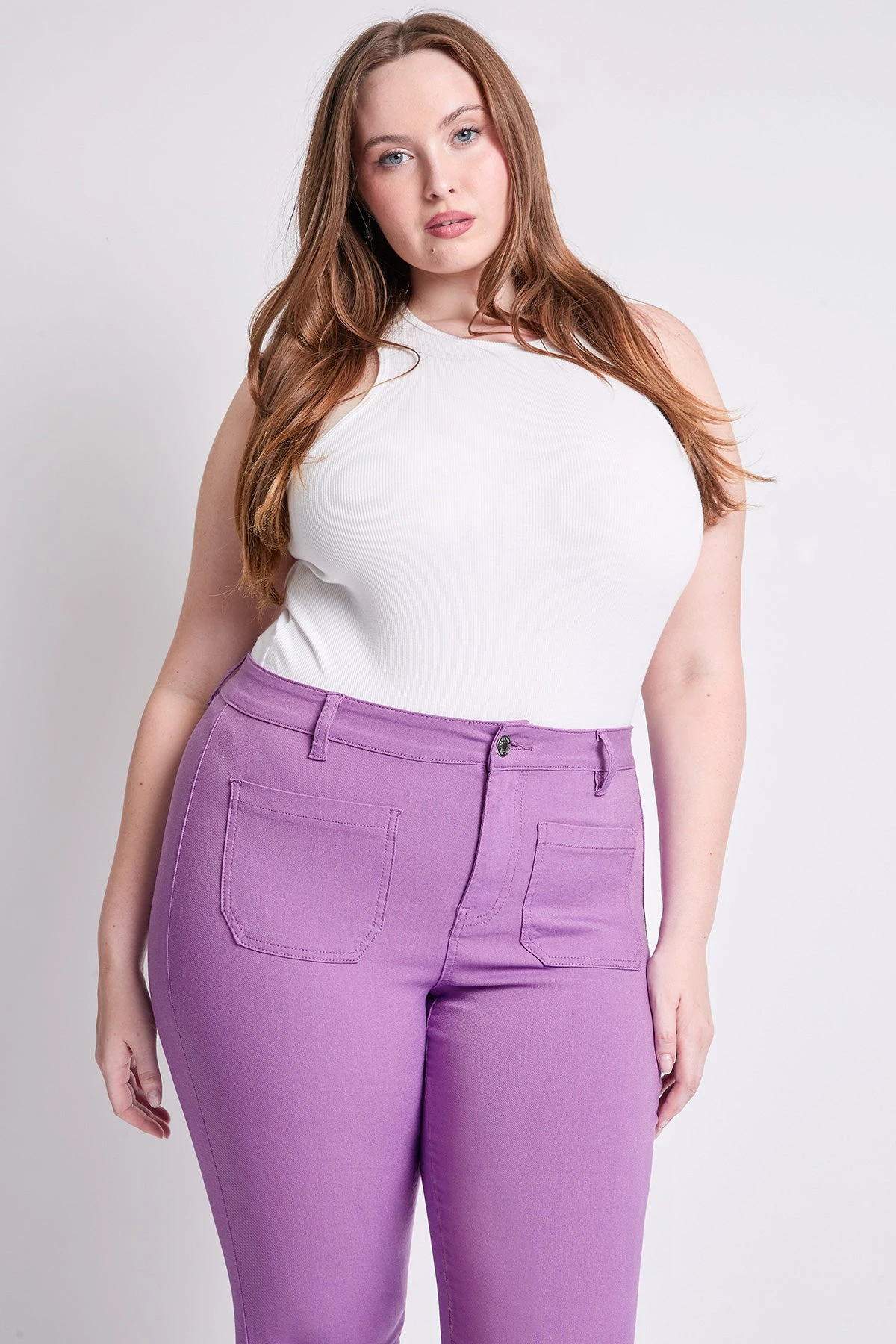 Women’s Plus Hyperstetch High Rise Crop Straight Leg Pants by YMI – designed to contour your body and create a stunning curvy silhouette, ensuring you look fantastic! Made from a unique Hyperstretch fabric, they offer exceptional comfort and flexibility. They feature two stylish front and back patch pockets. These cropped straight leg pants offer a classic and flattering fit.