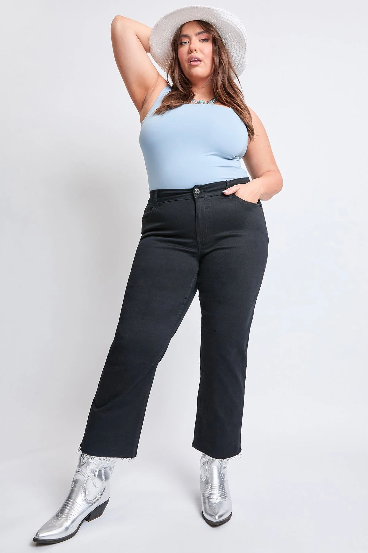 Throw it down in these Y2K retro-inspired Women’s Plus Cropped Wide Leg Pants. These low-key waist snatching trousers include an elastic rear waistband, mid-rise fit, classic 5 pocket design, and relaxed wide leg for enhanced movement and flex. The rear elastic waistband creates a cinched waist so you can sit pretty without worrying about that waist gap. Pair it up with your favorite sneakers and a crop top to complete your look.