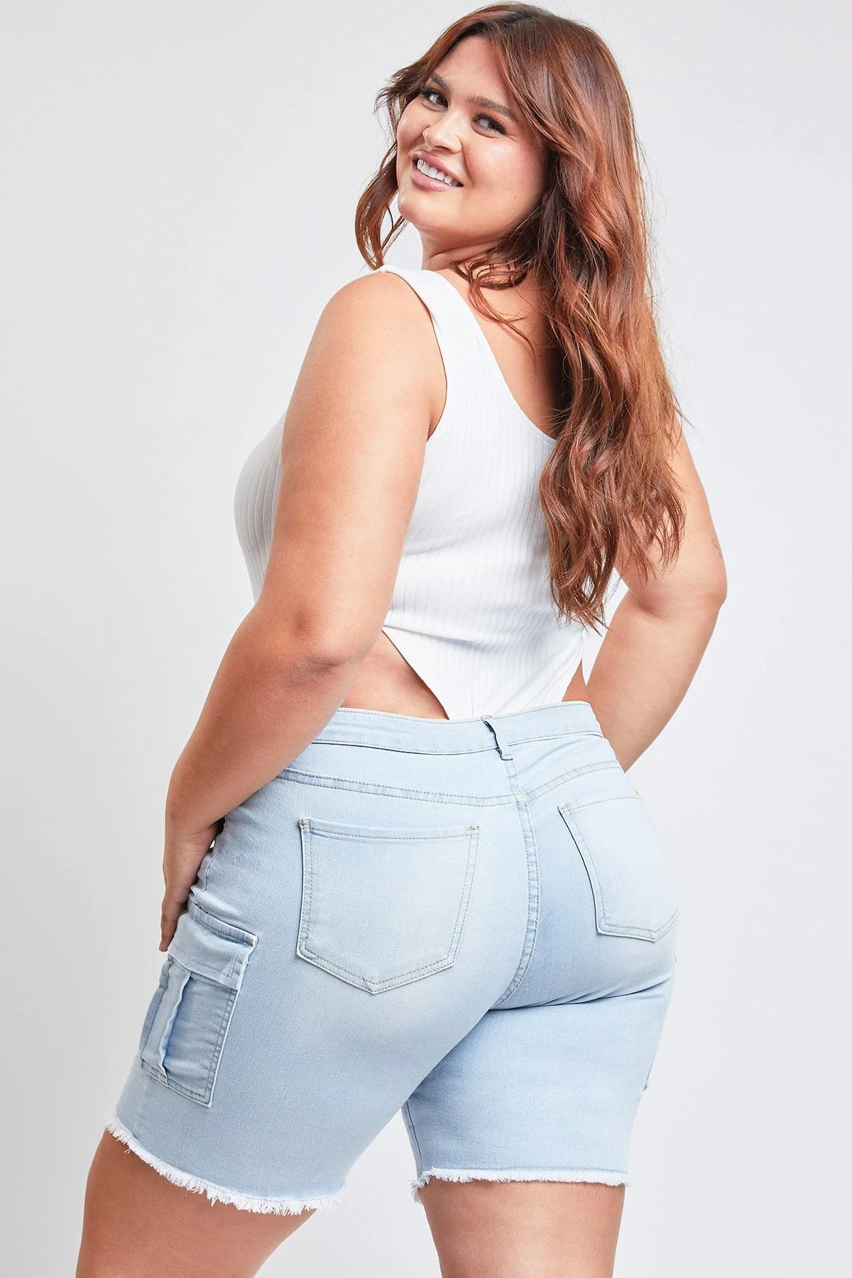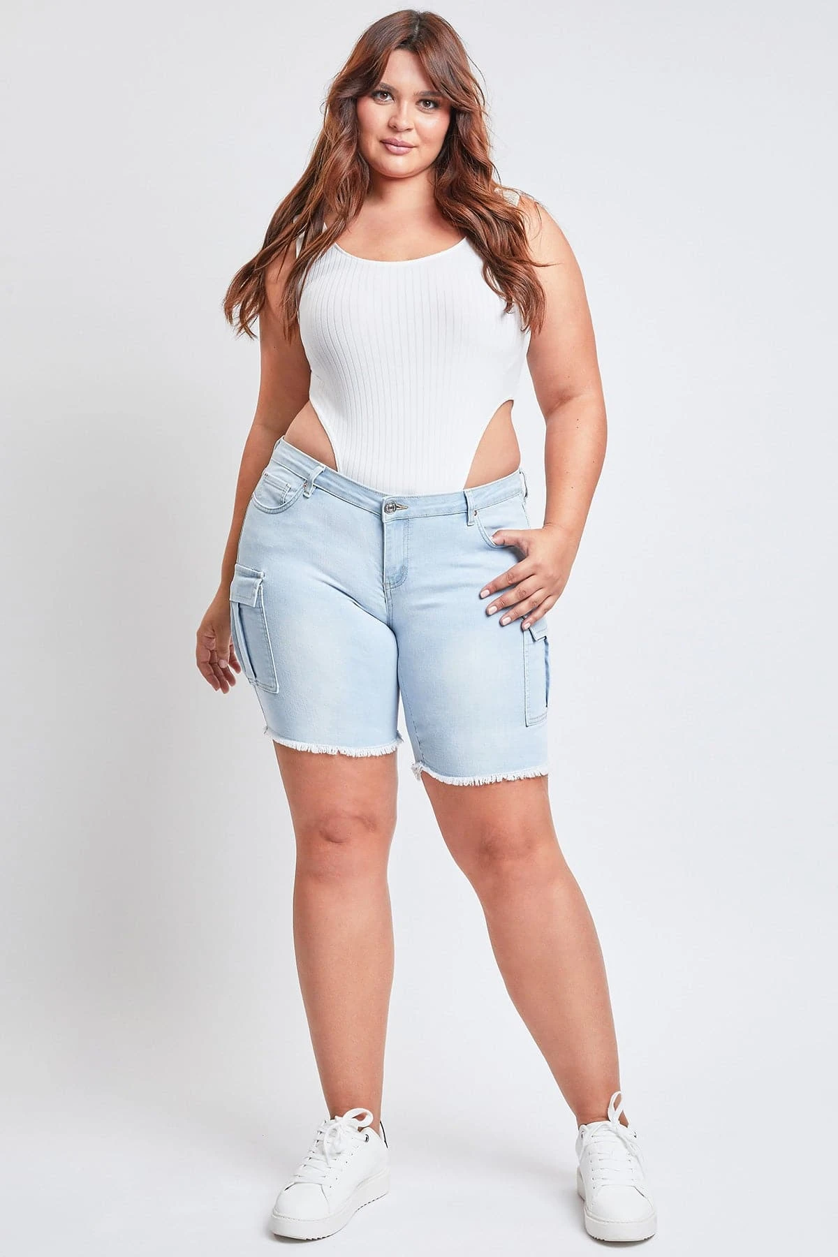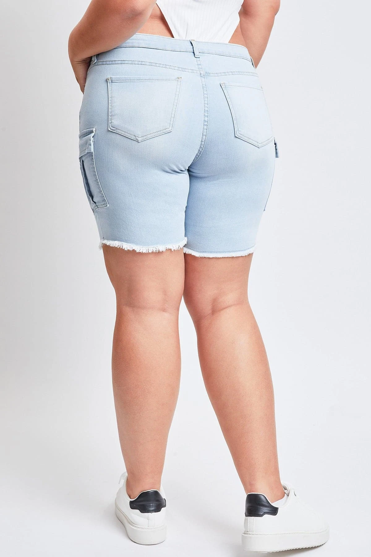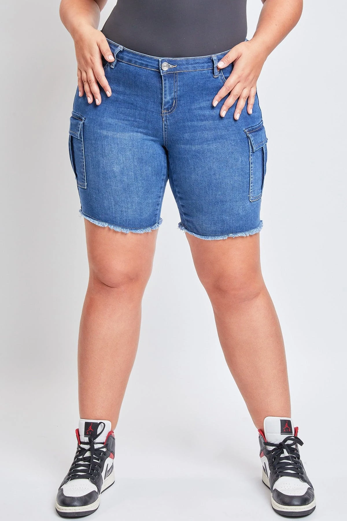 Who says shorts actually have to be short? Our Women’s Plus Low Rise Cargo Bermuda Shorts with Frayed Hem will have you ready to heat things up. This low-waisted denim short features flap cargo pockets at the side and a raw hem for a true utilitarian look. Wear these jean utility Bermudas with a crop top and sneakers, or dress them up with a bodysuit and heeled sandals for a sultry vibe!