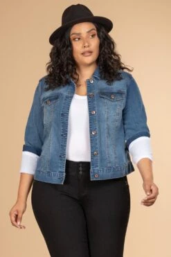 If there’s one piece that we can rely on season after season, it’s this Women’s Plus Size Cropped Denim Jacket. Add just the right amount of edge to your wardrobe with some layering pieces. Perfect for drinks with the girls, date night, and all of the above. Featuring summaryed flap pockets, summary-cuff long sleeves, and a summary-up front.