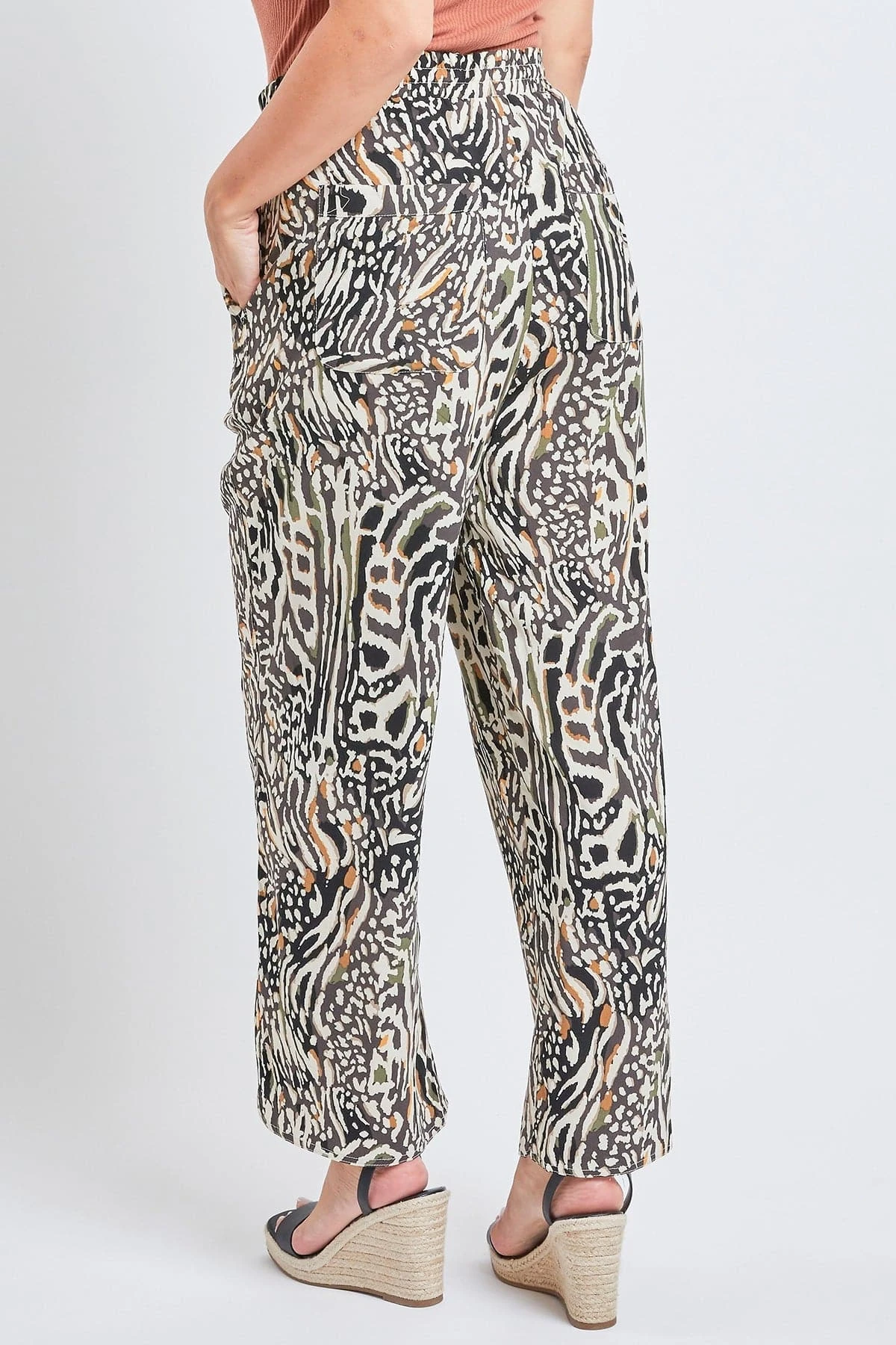 Feelin’ bold? Take any outfit up a notch with our Pull-On Stove Pipe Pant with Tulip Hem Detail, designed in a variety of prints. Made with an elasticized waistband with a drawstring so you can be comfortable too! Designed with 2 front pockets and 2 back pockets for convenience. These are lightweight and breathable and feature a relaxed fit for an effortlessly chic look. Pair these with a solid-colored top and heeled sandals. Layer with a denim or leather jacket for an elevated look!Â