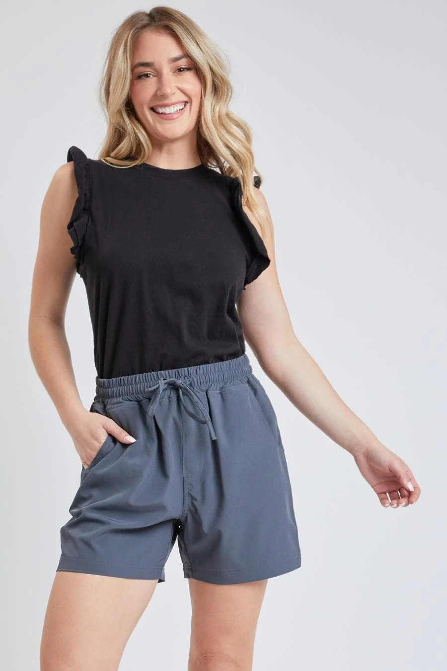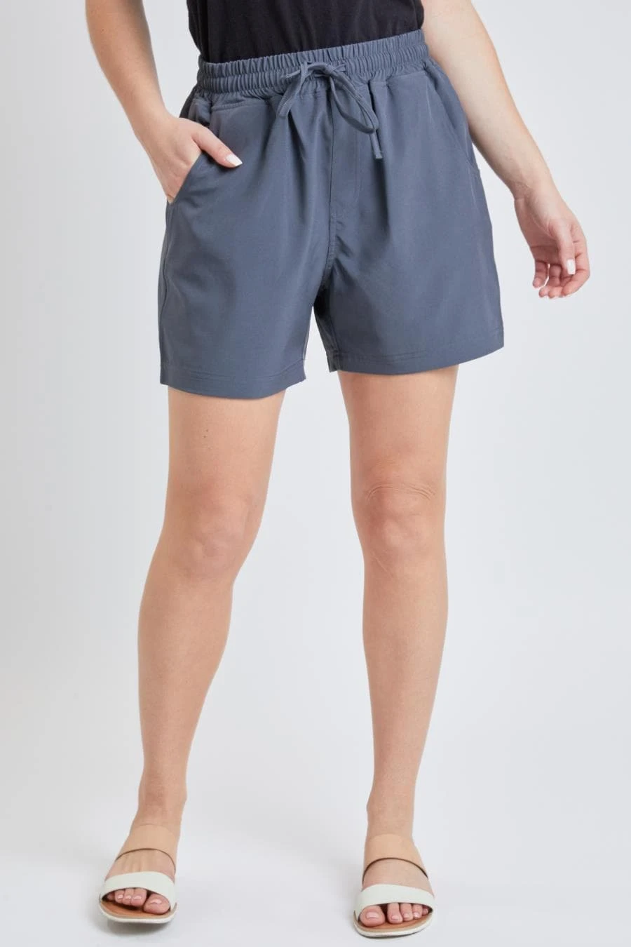 Our Women’s Shorts with Scoop Pockets are going to be your new favorite go to! Featuring front tie, elastic waistband, and four functional pockets. This garment moves with you throughout the day for a comfortable, flexible fit.