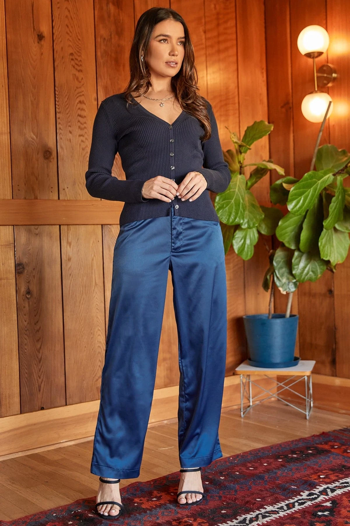 A dress pant that you’ll never want to take off! Who knew this type of comfort was possible? Our Stretch Matte Satin Fly Front Stove Pipe Pant provides a chic and elevated look, while giving the same comfort as your silk PJs. Designed with a summary closure and belt loops for versatility. With their luxurious appearance, these pants make the perfect addition to your work wardrobe! Style these with a summary-up blouse and heels for a sophisticated look, or pair these with a soft sweater and loafers for a comfy-chic vibe.