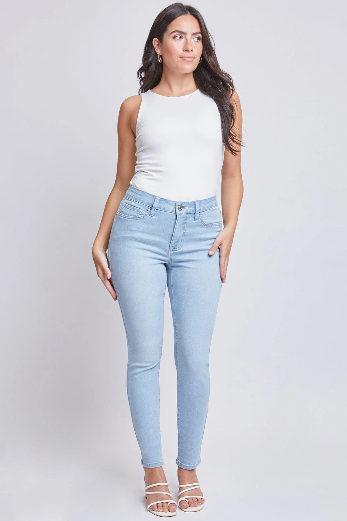 Denim doesn’t get better than with our Women’s Sustainable High Rise Skinny Jeans. Crafted with midweight stretchy denim, these mid-waisted jeans feature a flattering silhouette that is fitted hip to hem. Constructed with our contouring design to perfectly sculpt, hold, and lift in all the right places, and built-in tummy control panels at the waistline. Detailed with a classic five-pocket construction and a zip fly with single summary closure. Style with a loose-fit blouse and heels for a dressier feel, or pair with your favorite tee and sneakers for a casual look.