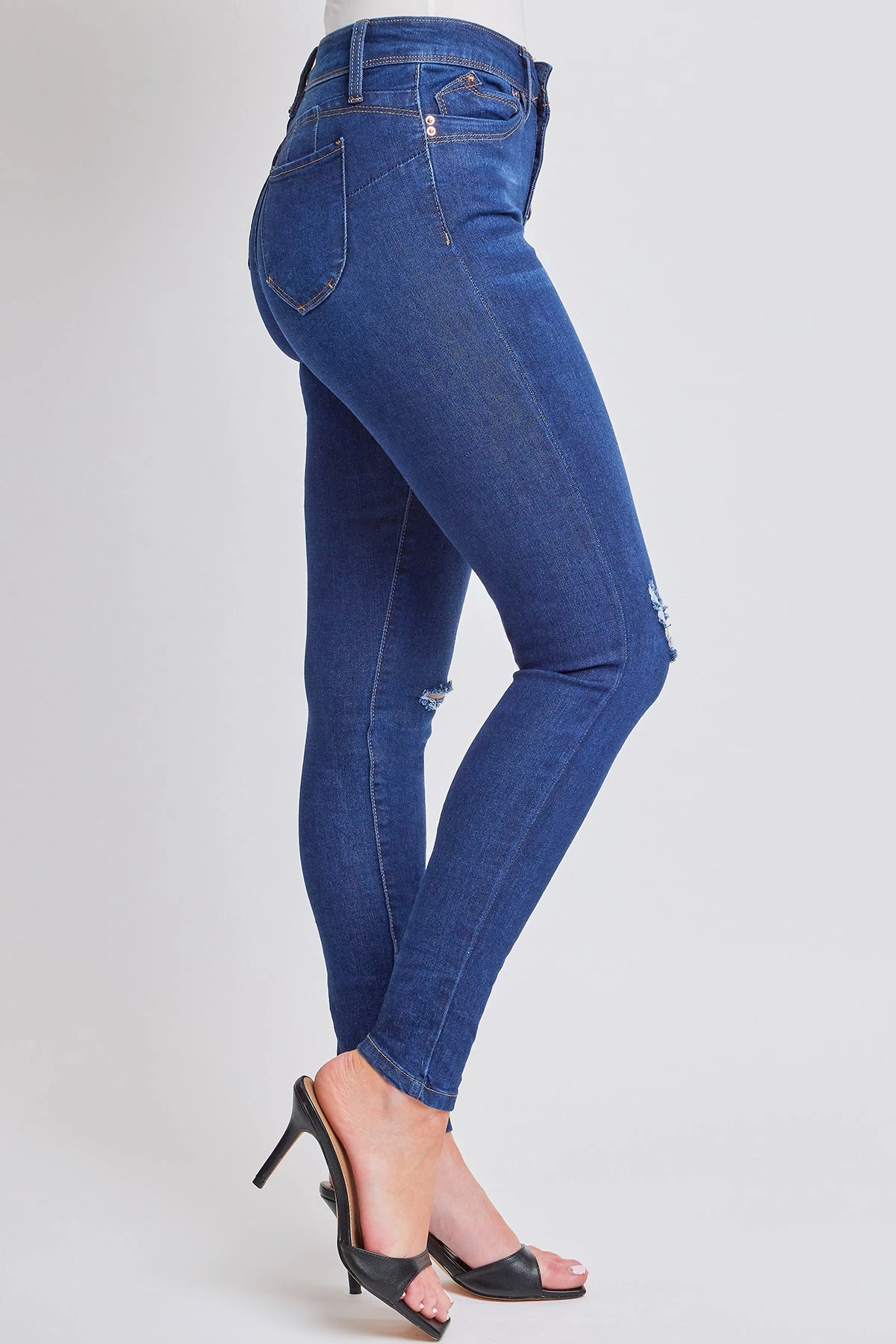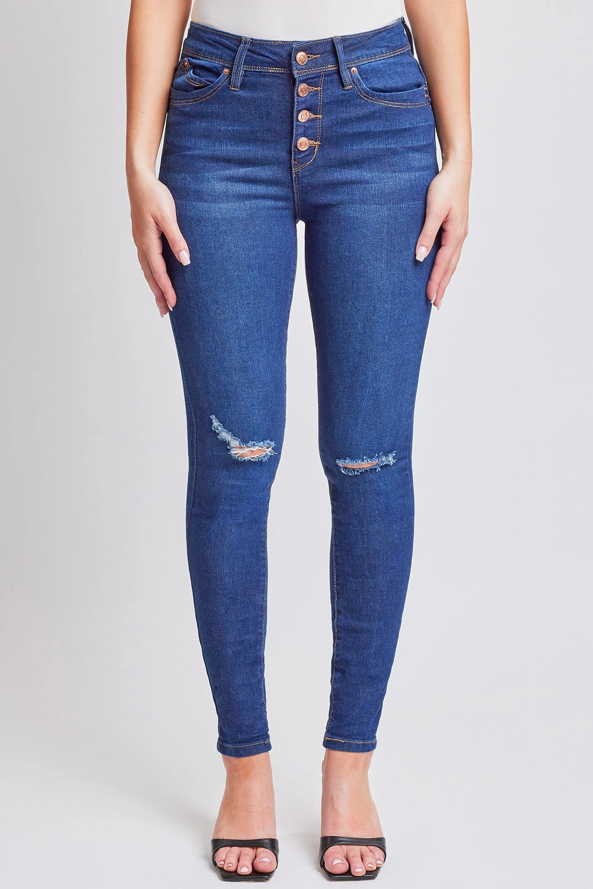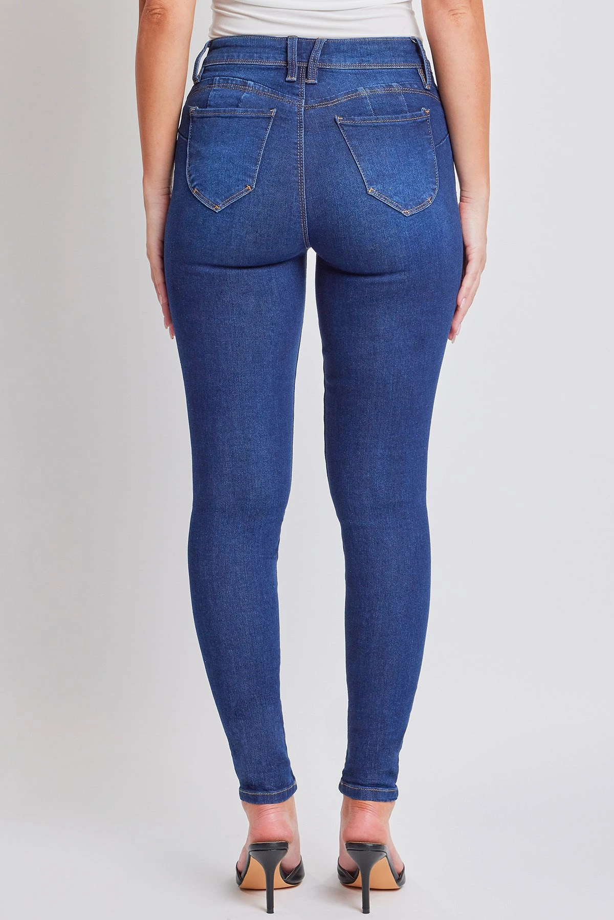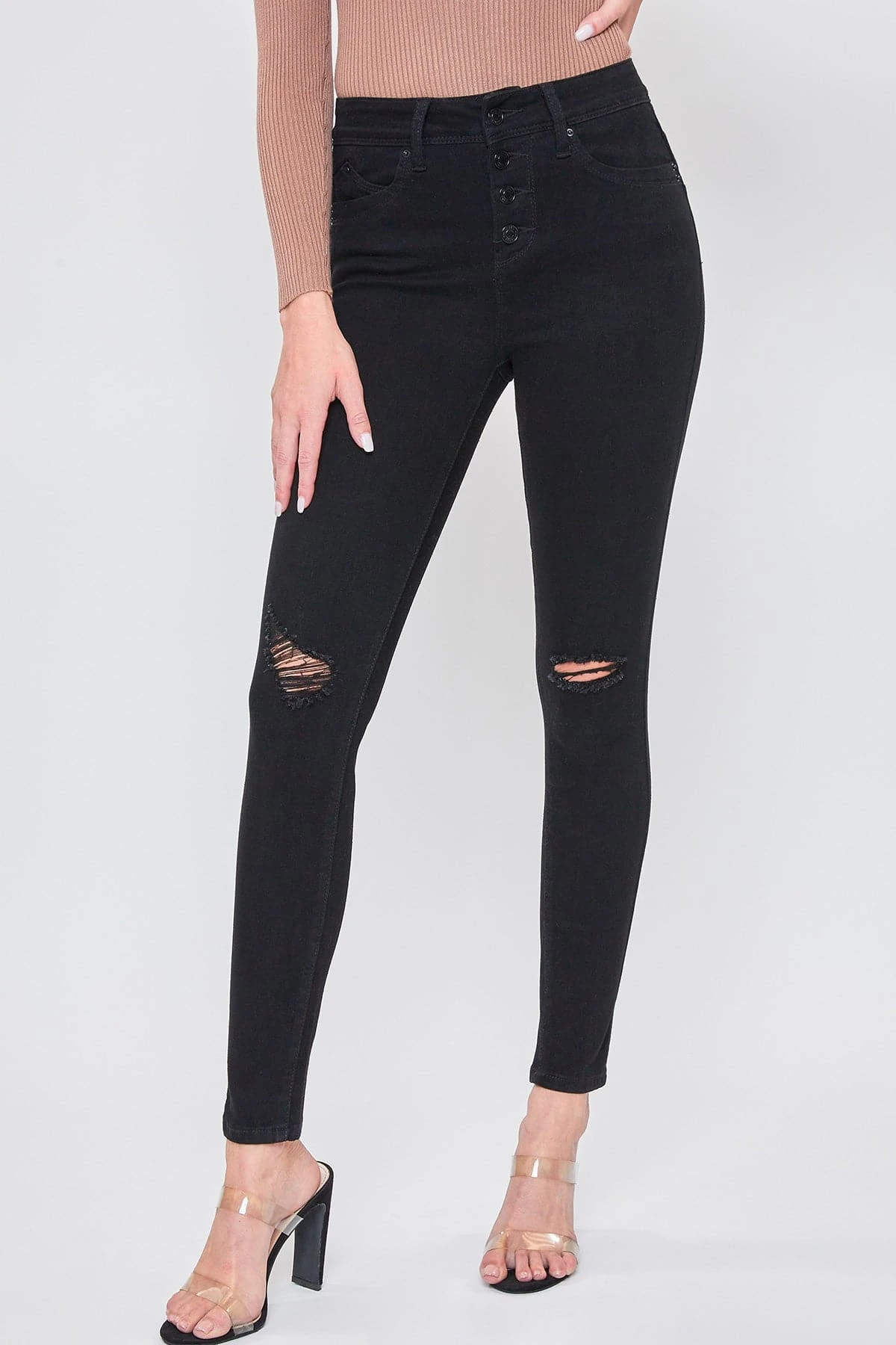 Cool-girl alert! Rock a vintage-inspired look in our WannaBettaButt Button-Fly Skinny Jean made with Recycled Fibers. These high-waisted denim jeans feature our signature WBB heart-shaped stitching that contours and lifts your bum, and our uniquely crafted pockets will highlight your natural curves! Featuring an ultra-high rise and an exposed summary fly, this skinny jean has a form-fitting silhouette from top to bottom. We recommend wearing your shirt tucked in or front-tucked to show off the unique details of these jeans!