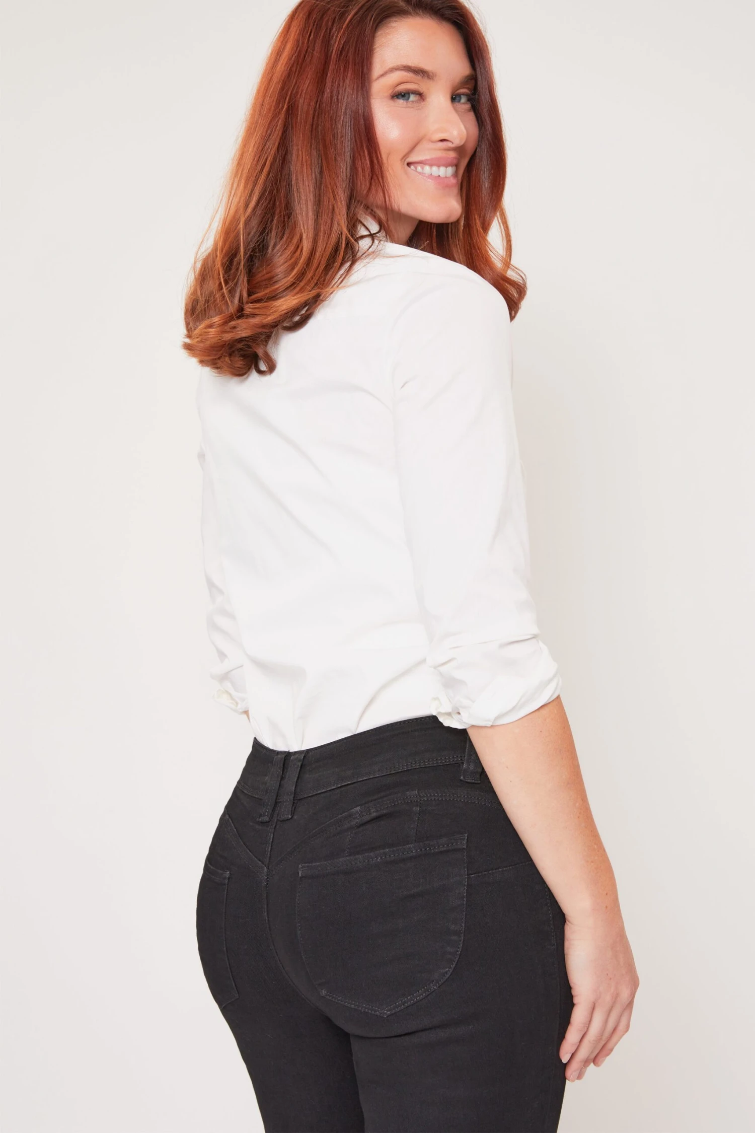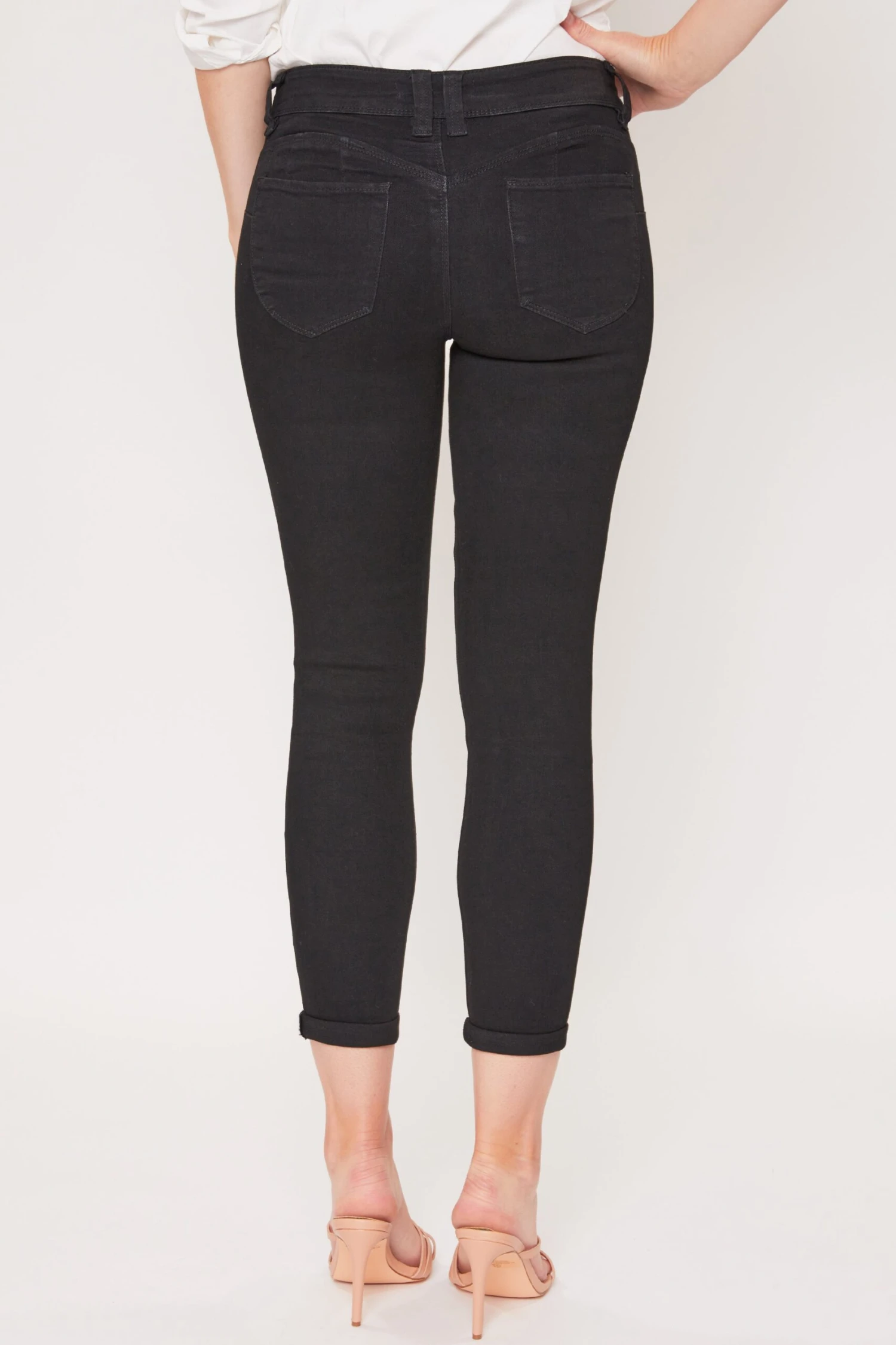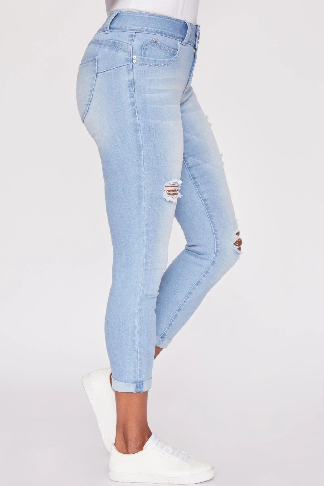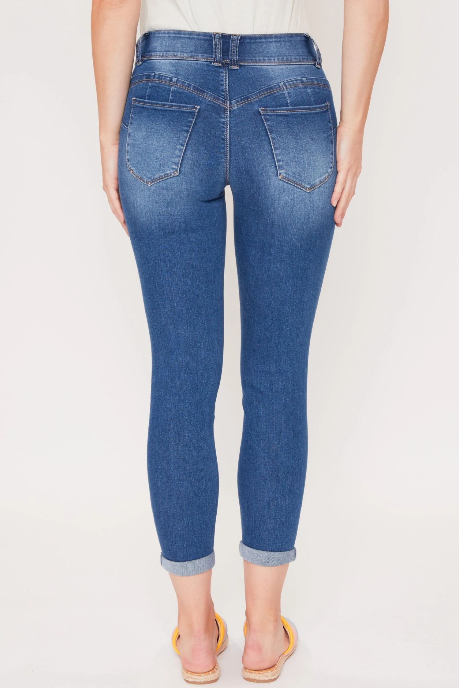 Our Women’s WannaBettaButt Cuff Ankle Jeans made with Recycled Fibers is the real deal. Featuring our signature heart-shaped stitching and perfectly placed pockets, this jean ever so slightly “lifts and shifts” your bum for an ultra-flattering shape. Detailed with a classic five-pocket construction, adjustable cuffs, double-summary closure with front zip, and belt loops. Made with stretchy recycled fabric that is better for the environment! Style with a t-shirt and sneakers for the ultimate casual-cute look.