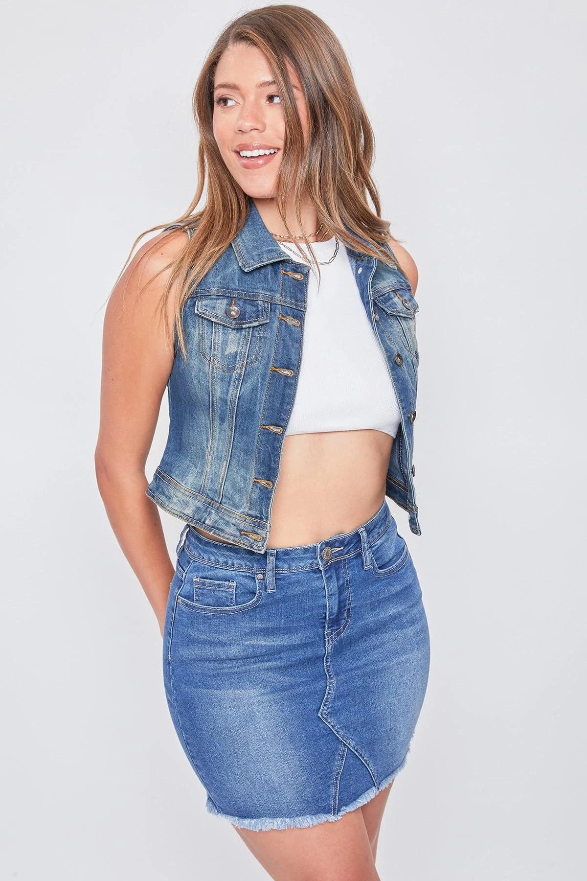 It’s giving biker babe! Our Women’s Vintage Denim Vest is the perfect 90’s throwback mixed with some edginess. We’ve designed this vest with special treatments and fading to embody the look of denim in the 90’s. This vest also has a fitted and cropped silhouette. Featuring a 6-summary front closure with 2 front patch pockets. For a 90s look, pair with denim jeans and platform sneakers. For a more modern take, pair this vest with a black mini skirt and tall black boots!