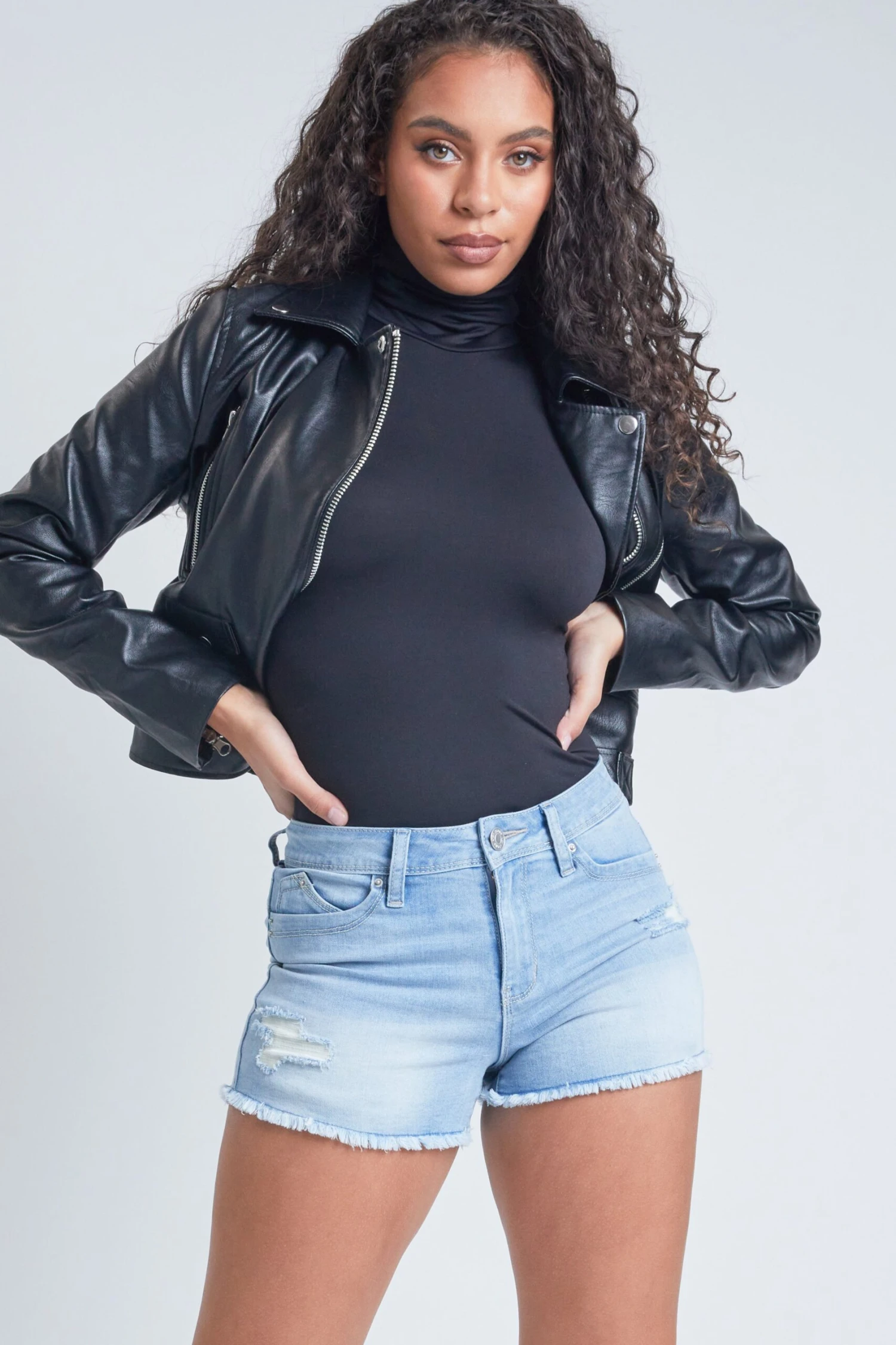 There’s a lot to love about our easy, breezy, booty-full Women’s WannaBettaButt High-Rise Frayed Hem Shorts. One of our most popular WBB styles, this high-waisted denim short features our signature heart-shaped stitching and perfectly placed pockets for a natural butt-lift that highlights you curves. Detailed with a classic five-pocket construction, front zip with single summary closure, and a frayed hem for that added edge. Pair with a fitted tank top and heels for a warm-weather look, or with a leather jacket and booties to channel your inner baddie!