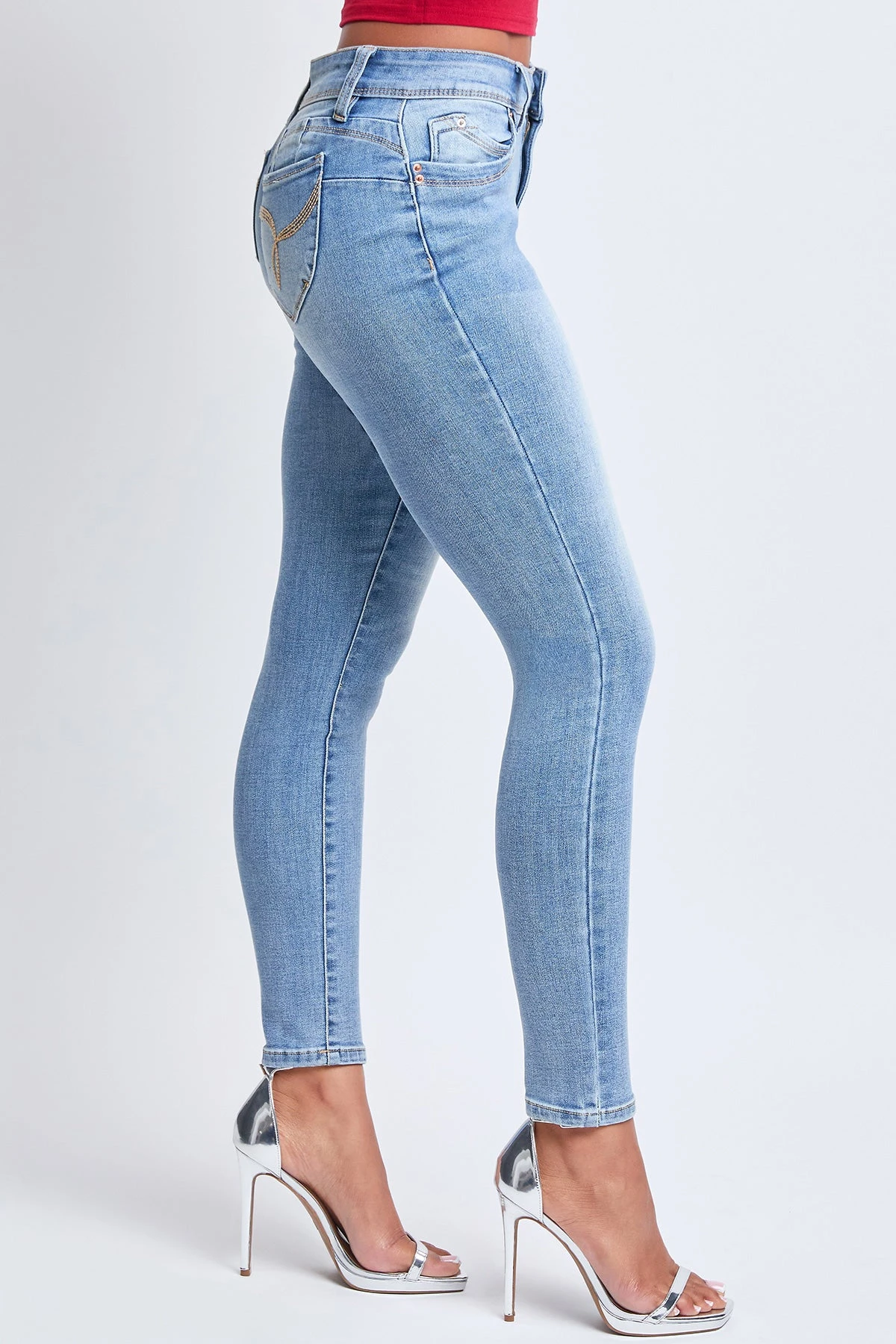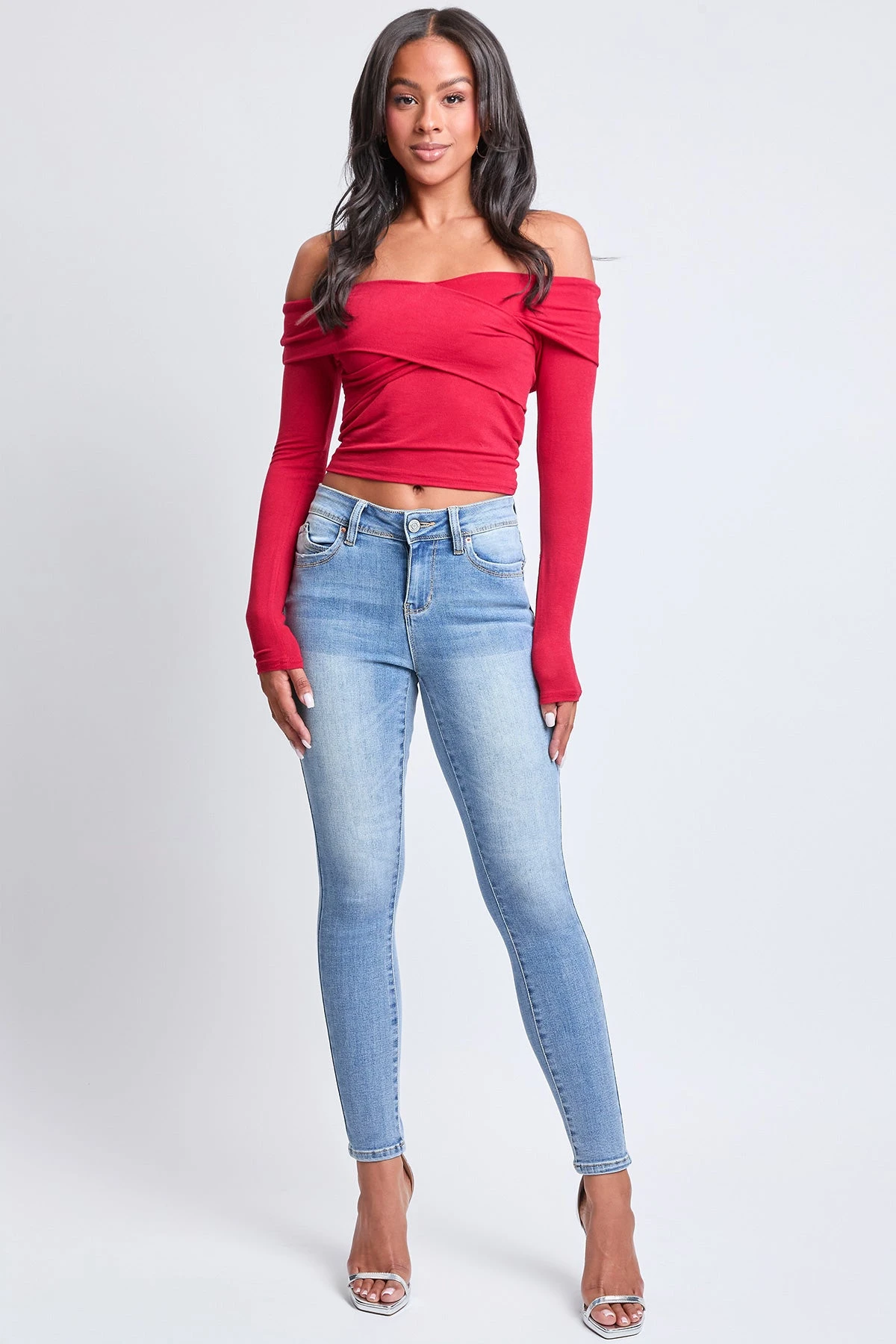 Women’s WannaBettaButt Mid Rise Embroidered Skinny Jean by YMI Jeans, where style meets sophistication for the modern woman’s denim collection. Crafted with meticulous attention to detail, these jeans redefine casual chic with their flattering fit and intricate embroidered details.