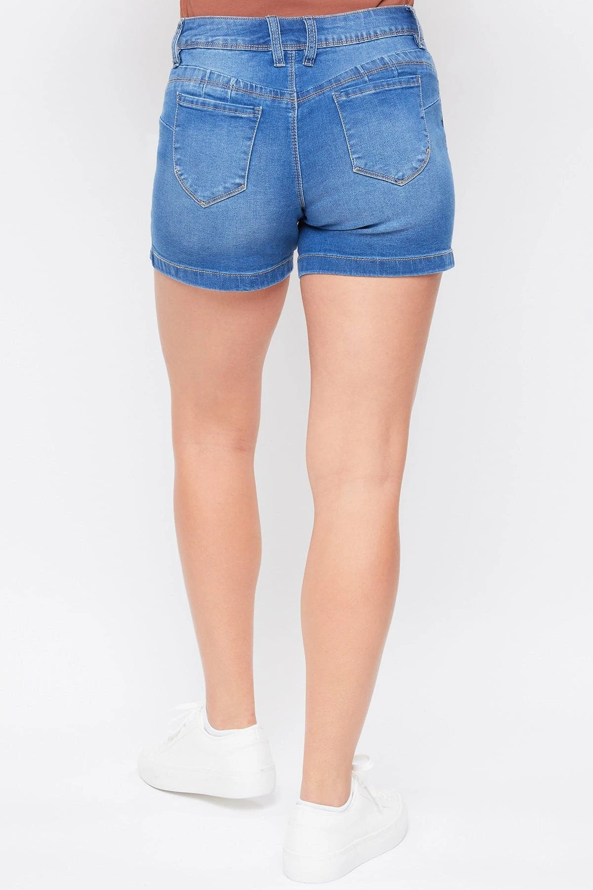 Our most popular style made sustainably! Our Women WannaBettaButt Side Slit Hem Denim Shorts feature heart shaped stitching, a signature pocket shape, and specially engineered contour seams to enhance your curves and achieve a flattering, firmer look! Made with lightweight and stretchy, yet durable recycled micro fibers, our WannaBettaButt recycled fabric denim collection provides you with the right amount of comfort and stretch. Designed to flatter with a mid-rise that sits comfortable in between your hips and belly summary and finished with whiskering and light front distressing for some edge. You’ll love the versatility of these shorts. Pair them with a tank or tee and sandals for a laid-back look, or style with a printed blouse and lightweight layer for a dressier feel.Â