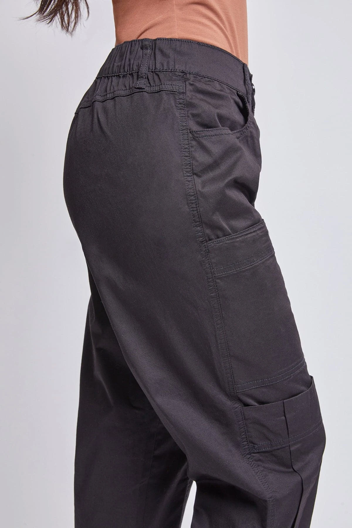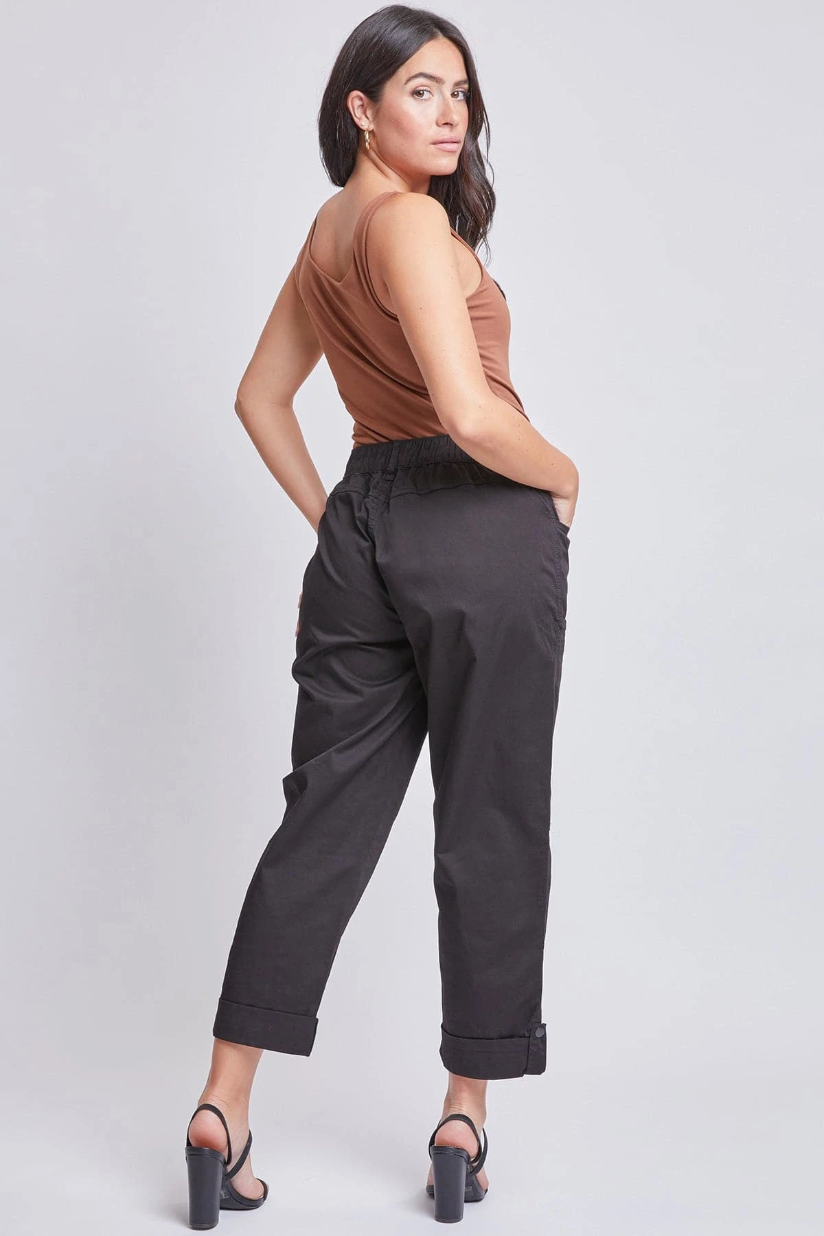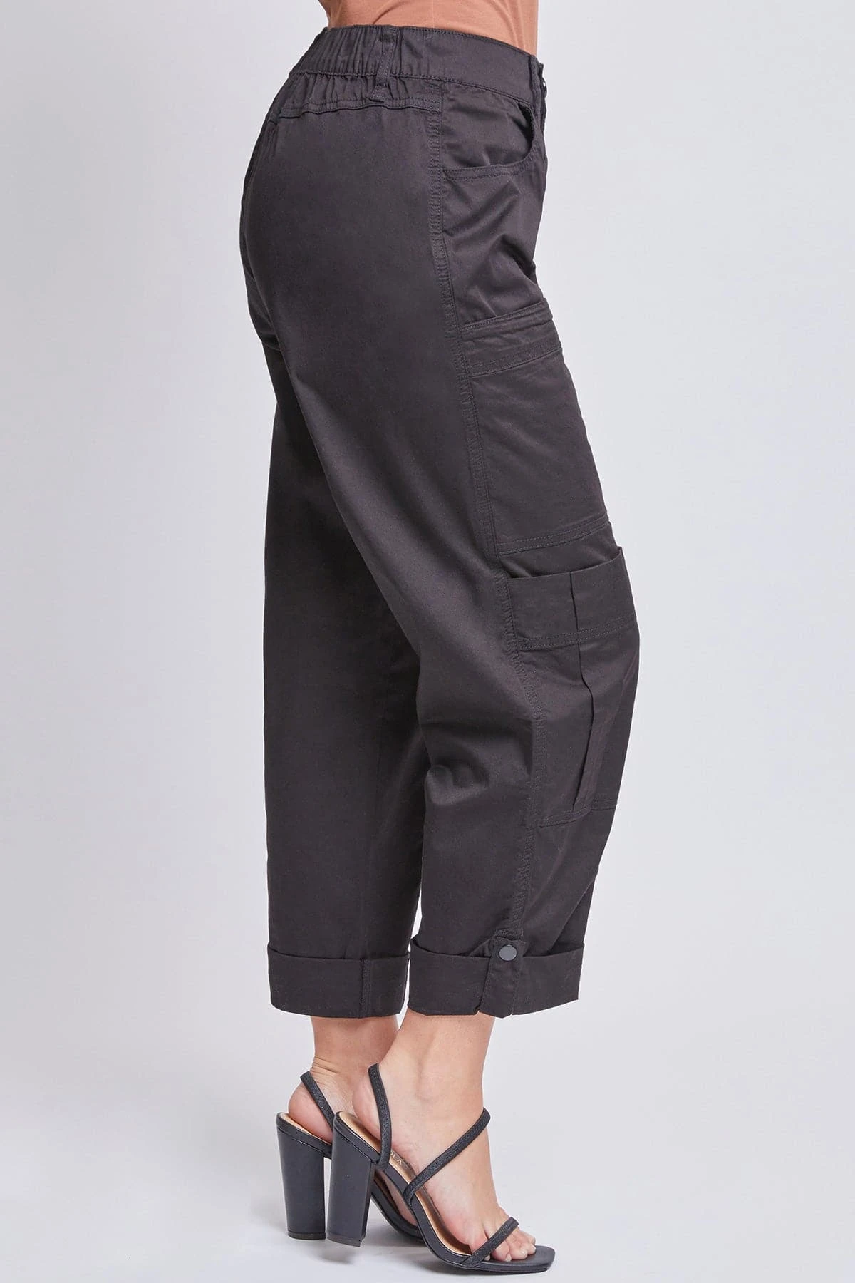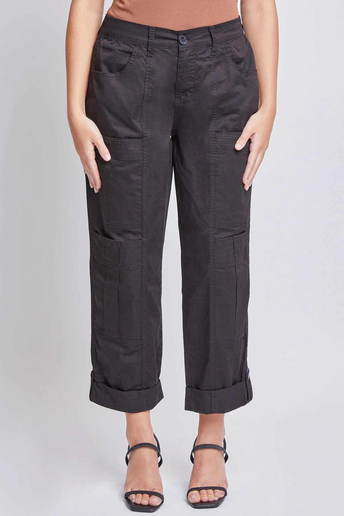 You’ve never met a better everyday pant than our Missy Poplin Cargo Pants with Roll Tab Hem. Constructed of lightweight poplin fabric, these trousers feature three sets of front pockets, each with a different style, for carrying all of your essentials. Detailed with an elastic back waistband for all-day comfort, and a roll-tab hem with snap summarys for the option to wear cropped or at full length. Pair with a bodysuit and heels for a classy look that can take you from business to pleasure with ease.