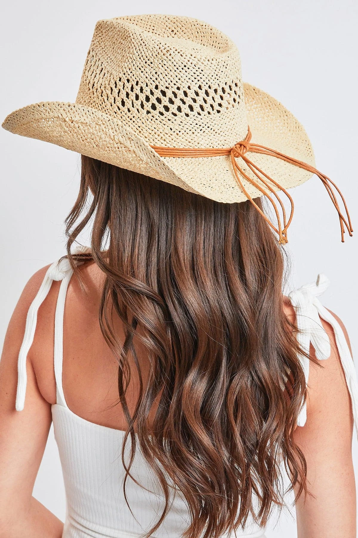 Channel your inner cowgirl this season with our Wynonna Ivory Straw Cowboy Hat! This western-style hat is made of woven straw with openwork detail that creates a lightweight, airy feel for the most comfortable wear. Features a curved brim, twisted contrast band, and classic teardrop crown. Pair with your favorite YMI denim and boots for the ultimate coastal cowgirl look that screams “yee-haw”!