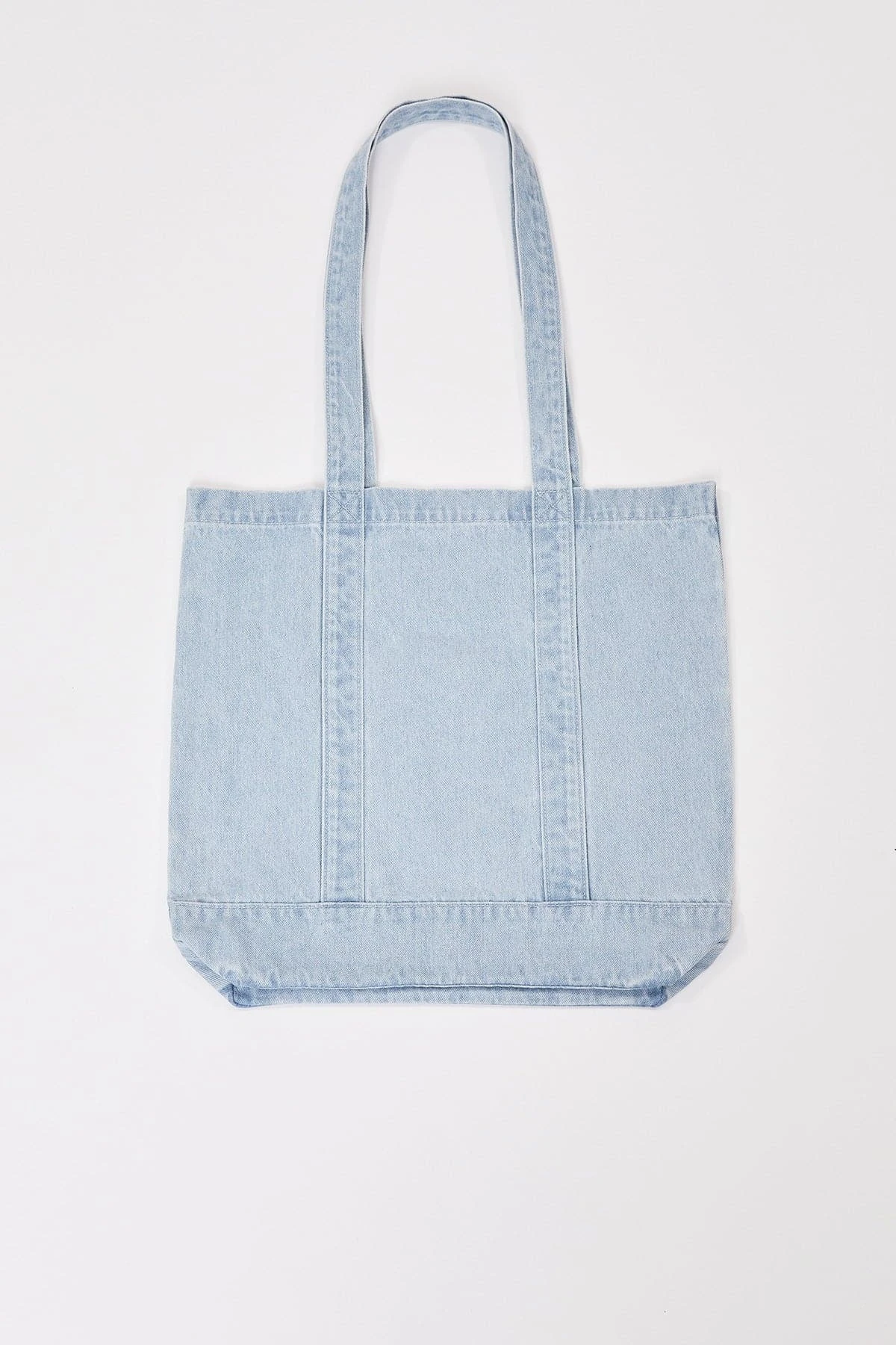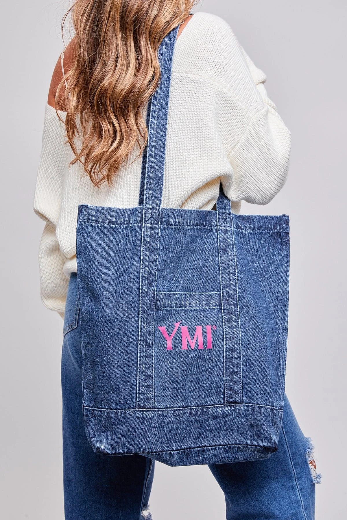 This Carryall Tote Bag is just what you need this season! Crafted from denim for a stylish, yet durable bag. We’ve also designed these with colored nylon straps for a unique and fun look. Made with re-enforced stitching at the base of handles to endure wear and tear. Featuring a functional large front pocket for convenience. This bag is perfect for effortless wear on arms or shoulders.